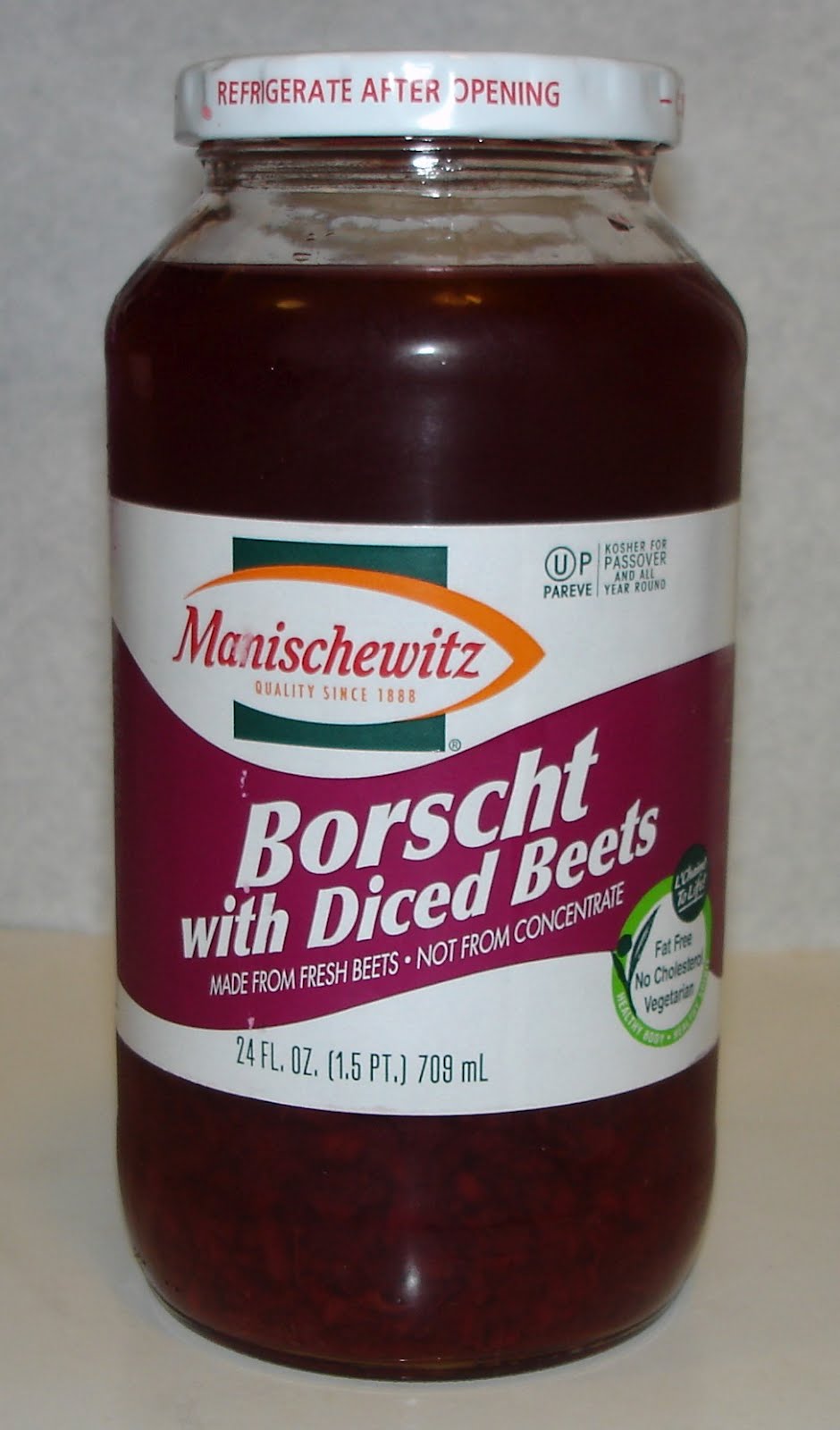 The thing that made me prepare this soup is a chance find of a product with the funny name "Borsht" in a local Safeway. "Borsht" seems to be a mistransliterated (forgive my English) Ukrainian and Russian word борщ normally pronounced kind of like borshch which is a different soup of an Eastern European origin. A glimpse at the list of ingredients revealed that this mysterious Borsht is nothing more than a beet broth, the main ingredient of kholodnyk.